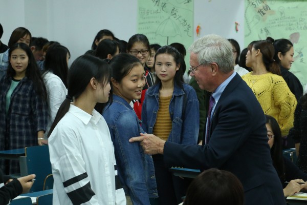 当日,杜靖德(Gene Lamke)教授还为国际商务系旅游(酒店)管理专业的学生们上了一堂关于“电话沟通技巧”的示范课。课上,杜教授风趣幽默的语言,深入浅出的讲授,与学生热烈互动的课堂气氛,都给在场师生留下了深刻的印象,得到一致好评。