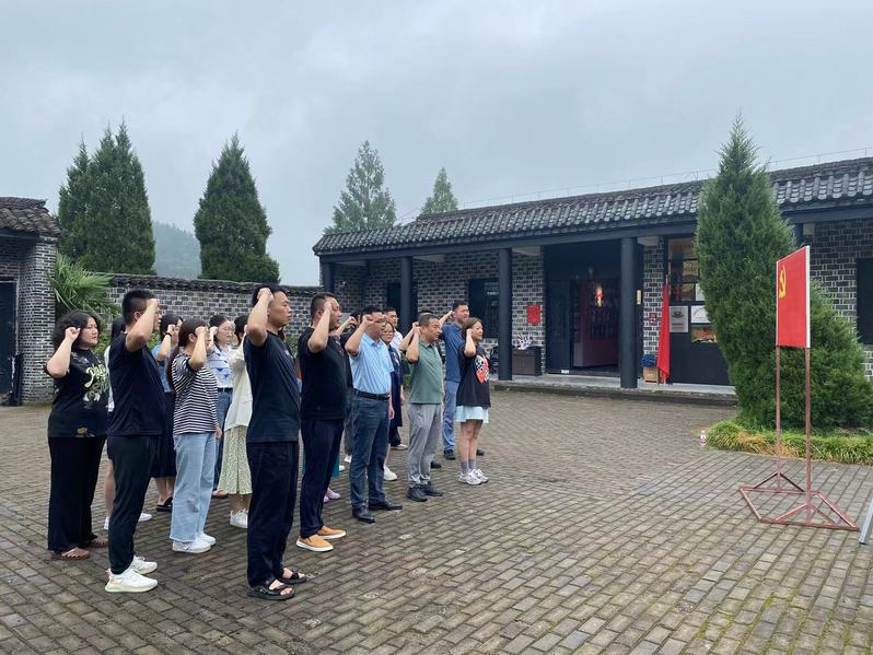 党支部首先前往新四军四支队旧址,参观了新四军四支队革命纪念馆。每位党员仔细观看了纪念馆展区陈列的历史图片、文字说明、珍贵文物等,追忆高敬亭司令员带领新四军四支队在皖西革命活动中波澜壮阔的光辉历程。在高敬亭烈士铜像前,全体党员高举右拳,庄严宣誓,重温了入党誓词,向革命先烈表达崇高的敬意。