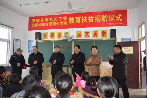 1月9日,省直机关工委书记朱斌,我校党委书记杨祖涛,工委办公室、直属机关党委负责人等一行,赴我校结对帮扶的舒城县绕山村,开展教育扶贫捐赠。
