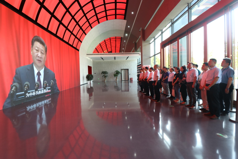 在党风廉政教育馆内,大家首先驻足观看了全面从严治党主题教育片《永远在路上》。在讲解员的引导下,大家依次参观了“纪律立党从严治党”“廉润江淮清风扬帆”“以案为鉴警钟长鸣”“不忘初心永葆清廉”四个展厅,展馆以“永远在路上”为主题,通过展板、图片、视频、雕塑、互动查询、场景还原、体验空间给广大党员带来了强烈的视觉冲击和心灵震撼,一件件让人触动深刻的警示案例,使大家深深感受到腐败行为给党和国家所造成的巨大损失,给社会、家庭和个人所带来的沉重代价。最后,张明辉带领全体参观党员整齐列队,面对党旗举起右拳集体宣誓,重温入党时的庄严承诺。