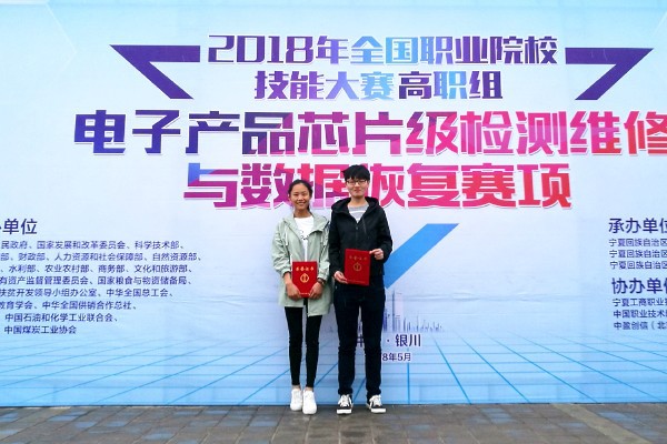 5月9日,第十一届全国职业院校技能大赛“电子产品芯片级检测维修与数据恢复”赛项在宁夏工商职业技术学院举行,我院信息工程系黄雪冬、王静静两位同学,在指导老师汪丹丹、宋小倩的指导下,与来自全国的75支队伍展开激烈角逐,最终荣获三等奖。