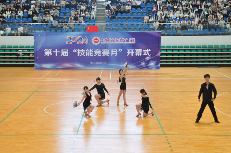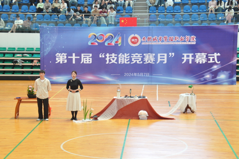 指导教师代表郭书恒、参赛选手代表朱文娇先后作了发言,由公共教学部选送的体育舞蹈《雨巷》、商贸管理学院和城市建设学院选送的创意茶艺《平生茶趣筑徽因》、学前教育选送的幼儿情境舞蹈表演《大家一起喜洋洋》分别在开幕式上作技能展示表演。