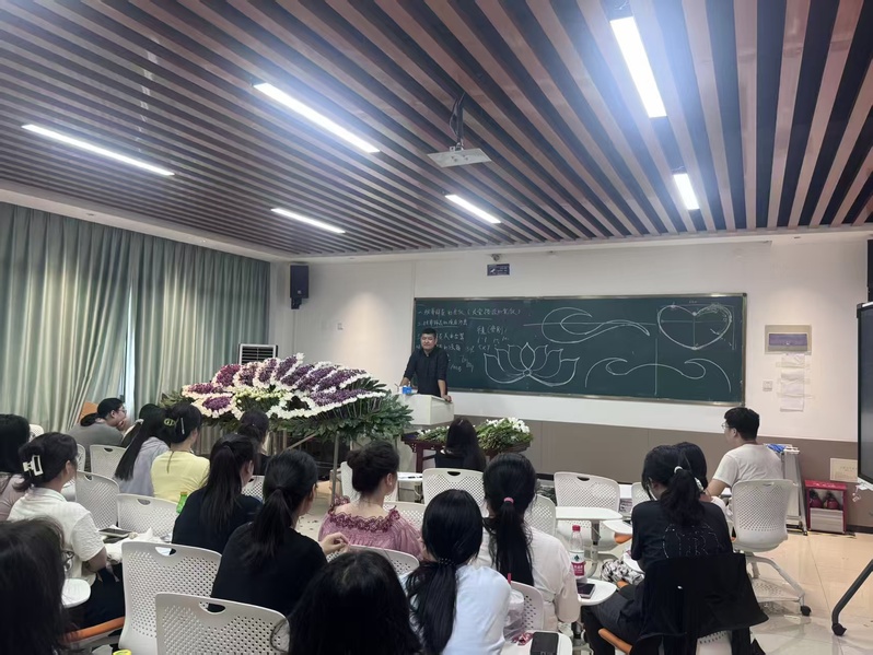 2025618日,我院D609生命文化实训室花香弥漫。四川仁孝文化发展有限公司运营总监、资深殡葬花艺师饶政刚先生应邀为2023级现代殡葬技术与管理专业学生带来了一场理论与实践融合的殡葬花艺专题讲座。