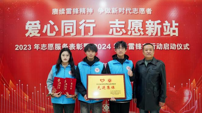 3月5日上午,由合肥新站高新区团工委组织的“2023年志愿服务表彰暨2024年学雷锋在行动启动仪式”成功举办,学院青年志愿者联合会荣获“2023年度新站高新区志愿服务先进集体”荣誉称号,十家获奖单位中只有两所高校单位获此殊荣。我院郝祥银、张庆盼、杨安琪三名同学荣获2023年度合肥新站高新区“优秀志愿者”称号。