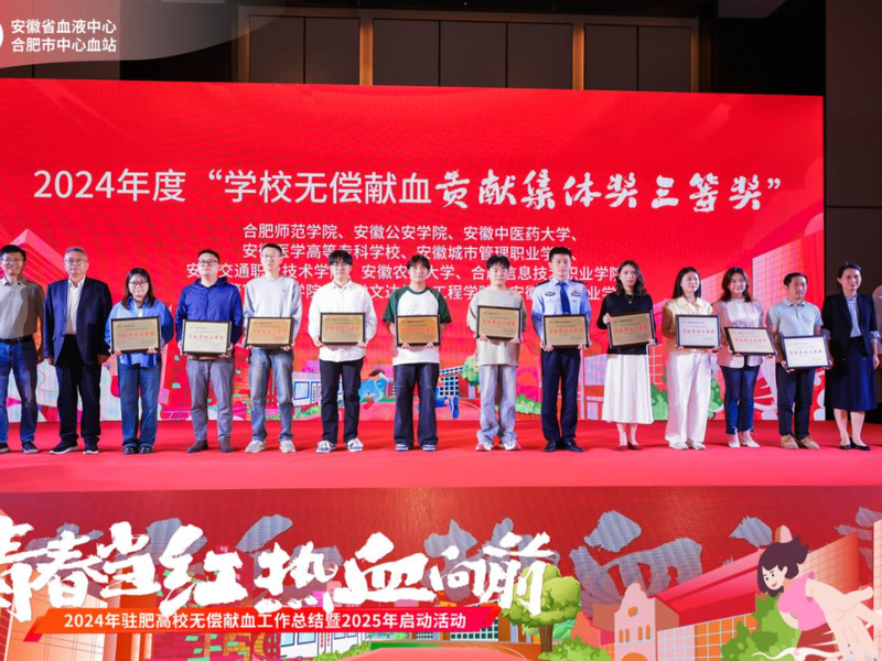 5月7日,2024年度安徽省驻肥高校无偿献血总结暨2025年启动活动在合肥隆重召开。我院凭借全年献血工作的卓越成效,荣获“学校无偿献血贡献集体三等奖”,团委柯燕妮老师获“学校无偿献血优秀组织个人”荣誉。
