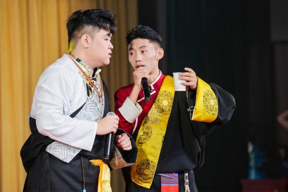 藏汉朗诵《浪花飞溅》、相声《文成公主进藏》和手工展示《唐卡》、《剪纸》,则是汉藏文化交融类节目,呈现出不同以往的艺术风格,有助于加深我们对历史融合过程中的藏汉民族宗教和文化的理解。傣族舞、藏族舞、不丹舞、街舞串烧则是通过汇集不同风格,不同民族特色、青春活力的舞蹈,给现场观众带来了一场民族视觉盛宴。