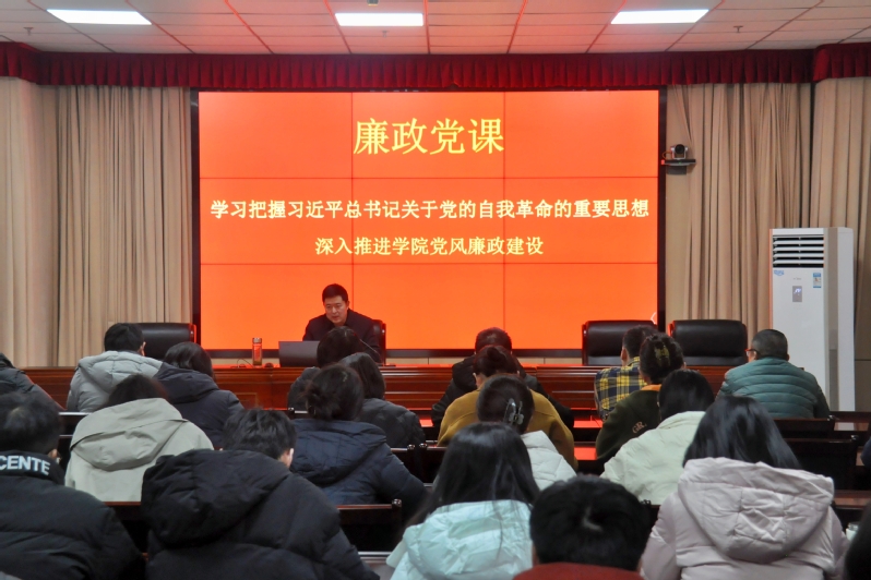 为推进新时代廉洁文化建设走深走实,持续巩固党纪学习教育成果,12月24日下午,学院党委书记张明辉为分管部门教职工党员讲授廉政党课。