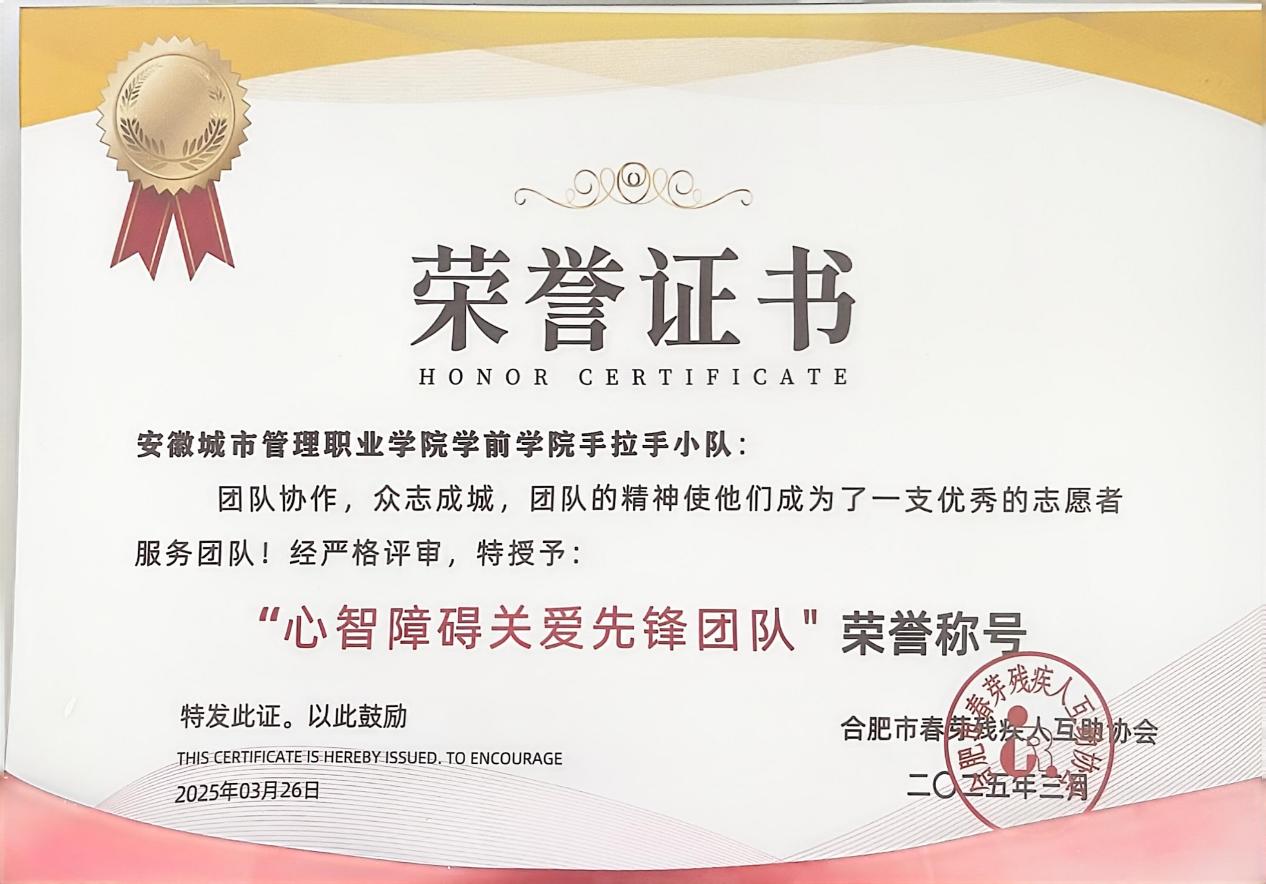 三月春风暖人心,雷锋精神永相传,手拉手小队的同学们以雷锋精神为指引,用点滴行动汇聚爱的江河,用自己微薄之力滋润特殊教育的土地,于2025年3月26日再次荣获合肥春芽残疾人互助协会授予手拉手小队“心智障碍关爱先锋团队”荣誉称号。