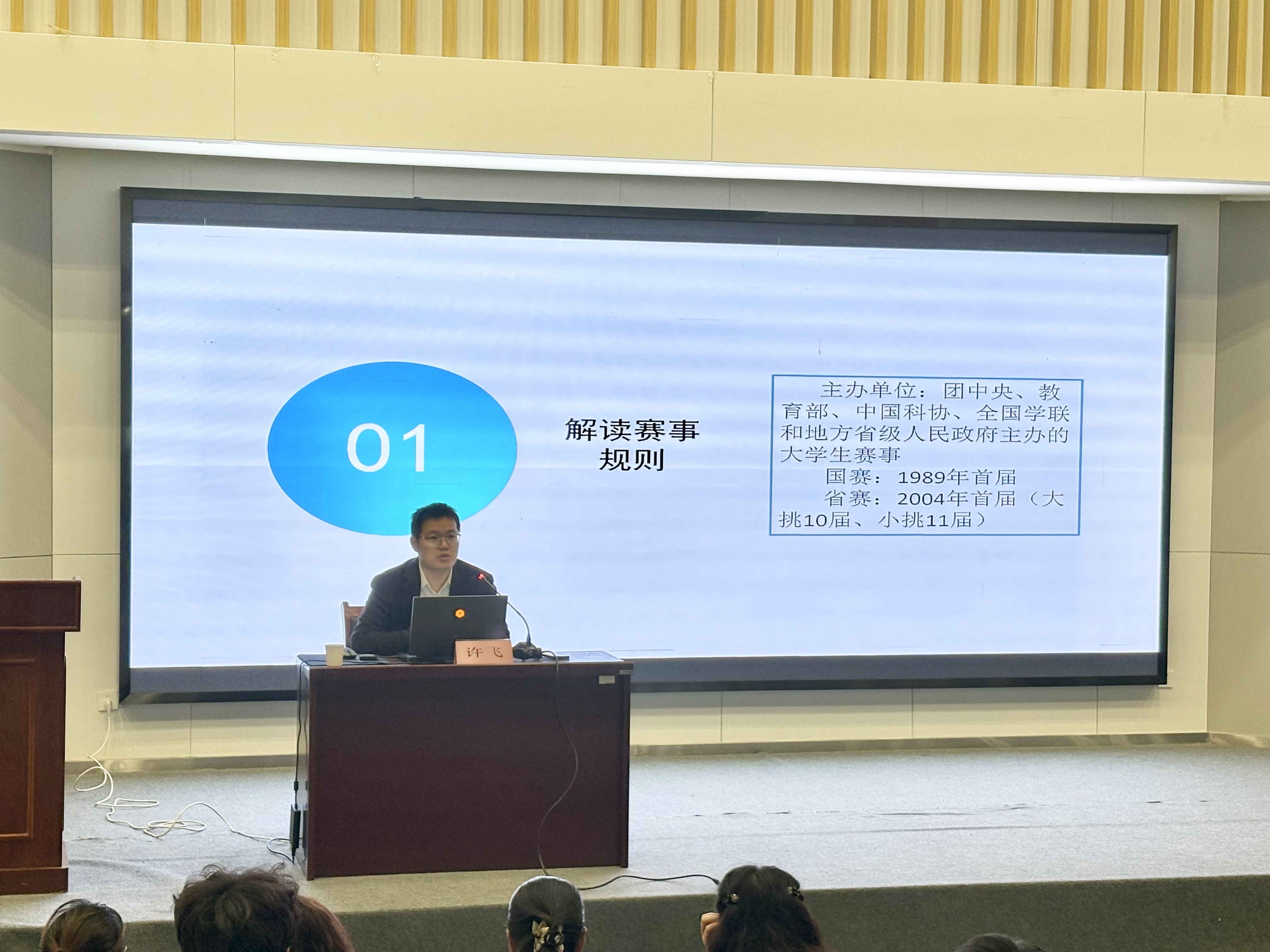 培训中,许飞围绕挑战杯的赛事流程、作品要求和评审规则进行深入解读,并结合往届获奖作品,深入剖析了项目选题定位、作品结构逻辑、PPT设计与制作、项目支撑材料等方面的要点。此次“挑战杯”专题培训,提升了师生对赛事流程的认知水平和参与积极性,增强了参赛备战的信心,为全面提高参赛作品质量奠定了良好基础。
