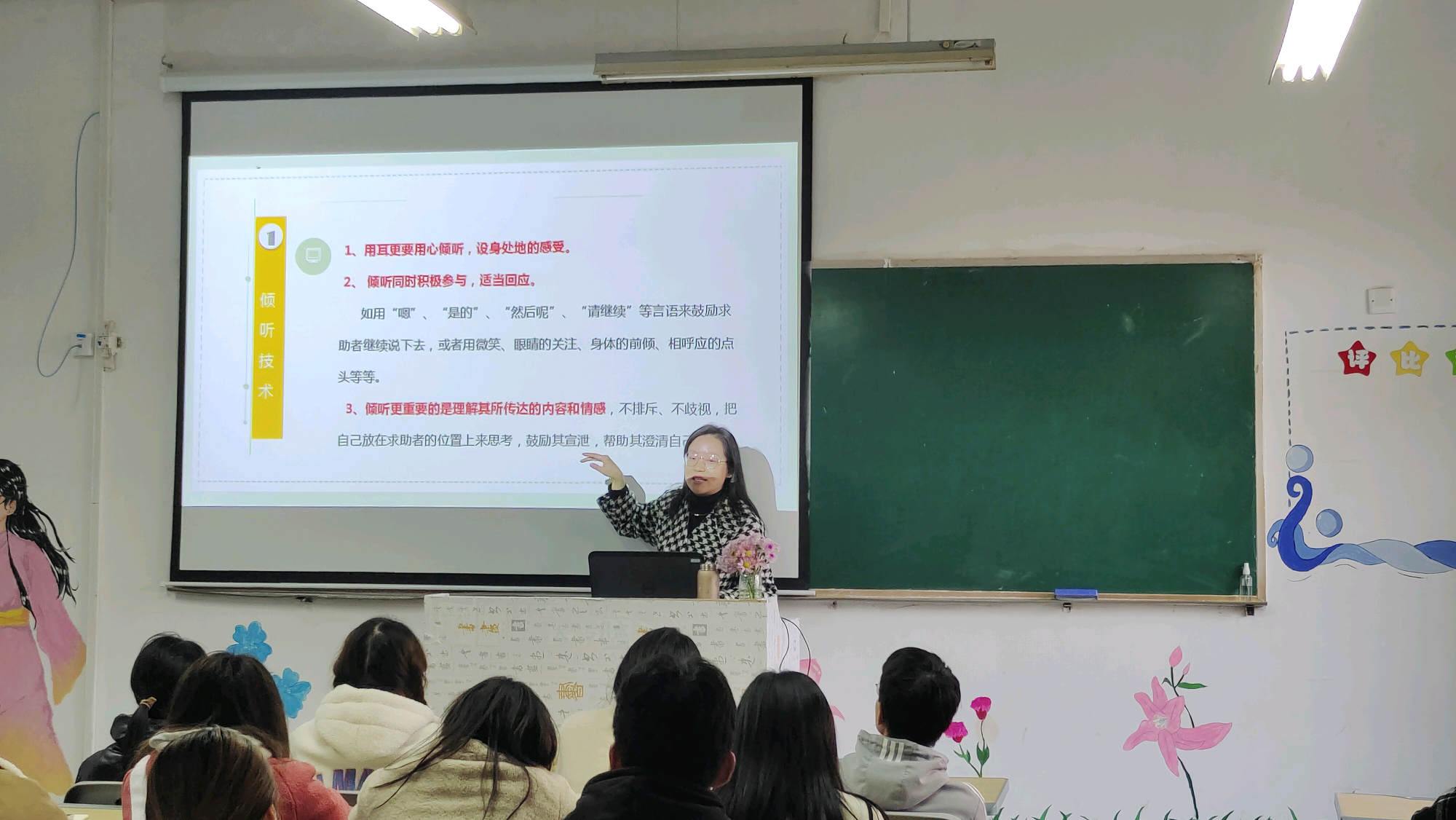 本次讲座围绕心理委员的角色定位工作职责、心理危机的识别和预防、朋辈心理咨询谈话技术、班级心理健康活动开展等内容展开,结合案例展示、情景模拟等方法,帮助心理委员了解学校心理健康教育工作体系,明确心理健康教育工作的意义,掌握朋辈心理辅导的方法,增强心理委员助人自助的使命感。