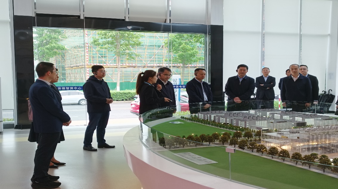 在中国电信合肥分公司调研时,公司党委书记、总经理丁勇等对我院调研组一行表示欢迎,并以园区沙盘为载体,介绍了大数据产业园的建设情况。调研组参观了中国电信安徽智算中心、互联网数据中心。
