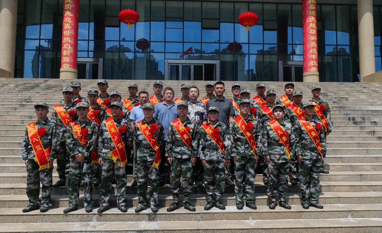 新兵入伍欢送会仪式结束后,师生家长们合影留念, 伴随着送兵大巴车的缓缓移动,新兵们胸戴红花,意气风发,豪情满怀,肩负着“强军梦”“强国梦”的光荣使命,承载着学院和家乡父老的殷切期望,开启他们的军旅生涯。