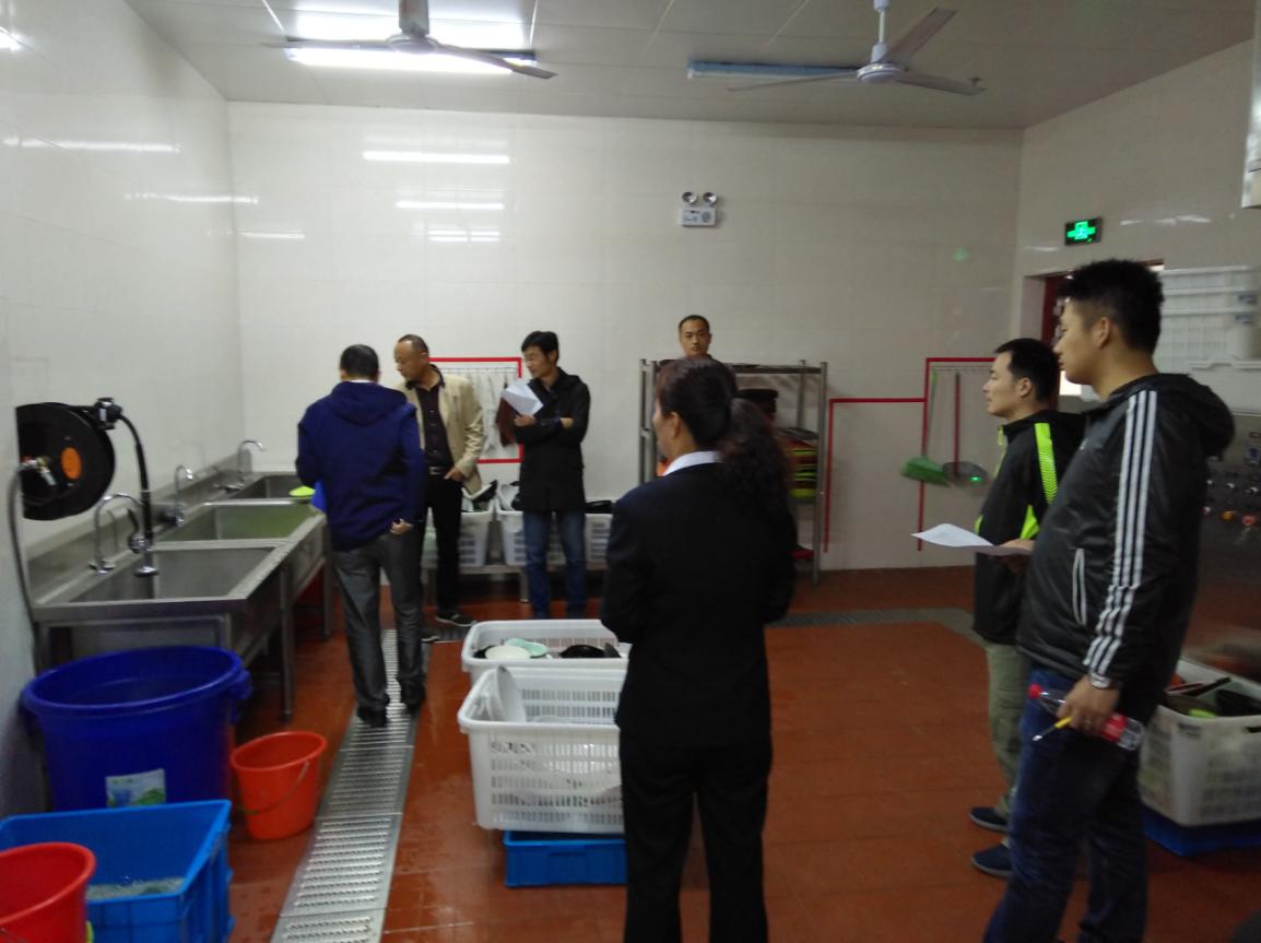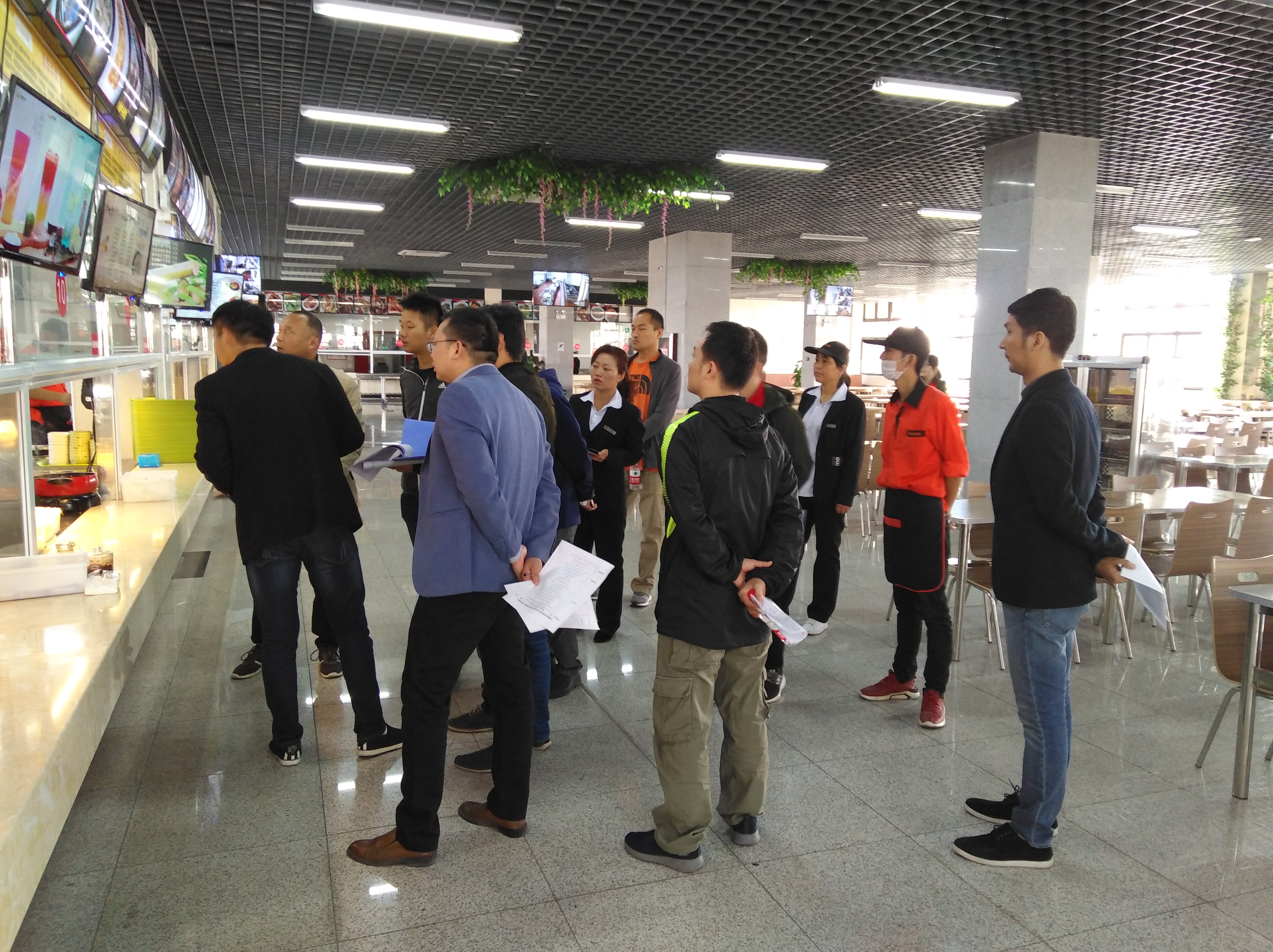 2018年10月18日上午,总务处联合教务处、学生处、保卫处、团委进行学院食堂量化考核检查,检查项目涵盖食品安全、菜肴质量、采购质量、个人卫生、环境卫生、窗口服务六部分,共四十一项。检查区域覆盖一至三层两家餐饮服务公司的主副食库、高低温冷藏区、荤素菜加工区、面点间、蒸煮间、烹饪间、售卖窗口、特色餐饮区、大厅及卫生间。