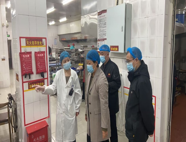 章小槟一行先后走进两校区的食堂,详细查看各家食堂的制度执行、环境卫生、食材采购验收、食品储存放置、食品加工制作、餐饮器具消毒、食品留样管理等整个食品环节的操作,重点了解从业人员健康证、食材索证索票、食品留样记录等台账资料。